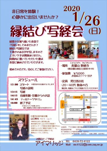 このたび、アイマリッジ様との企画で、「縁結び写経会」を開催します。 お寺で写経に触れてみませ…