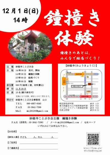 12月1日の鐘撞き体験は、定員に達し、受付終了となりました。 たくさんのご応募ありがとうご…