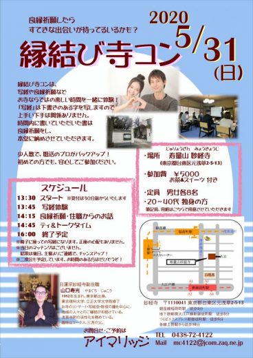 縁結び寺コン(5月31日、浅草妙経寺)→延期