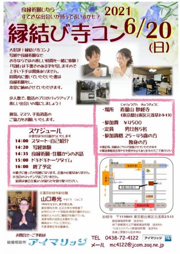 このたび、アイマリッジ様との企画で、「縁結び寺コン」を開催します。 お寺で写経に触れてみませ…