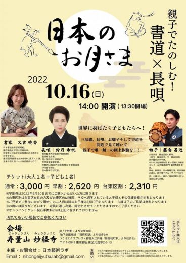 この度、親子で楽しむ「書道×長唄」を開催いたします。 唯一無二の体験です。 …