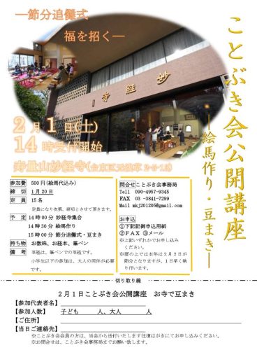 2月1日、ことぶき会公開講座を行います。 今回は、節分に合わせ、絵馬作りと豆まきを行います。…