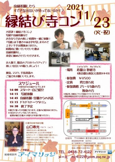 このたび、アイマリッジ様との企画で、「縁結び寺コン」を開催します。