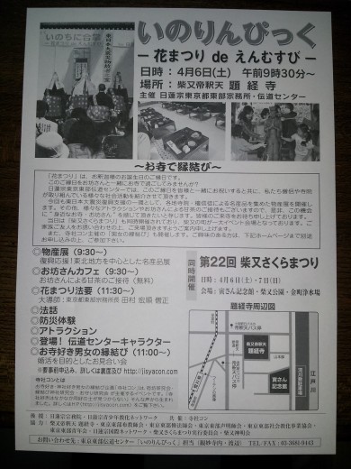 明日、開催を予定しておりました『いのりんぴっくin柴又~花まつりdeえんむすび~』は…