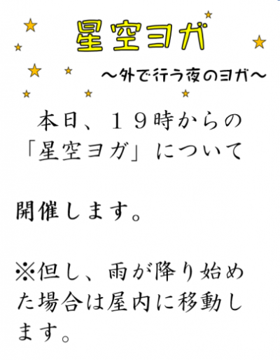 【終了】24日「星空ヨガ」
