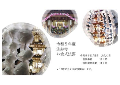 お会式法要配信の御案内 今日は秋晴れの気持ちよい天気ですね。 いかがお過ごしですか? 本…