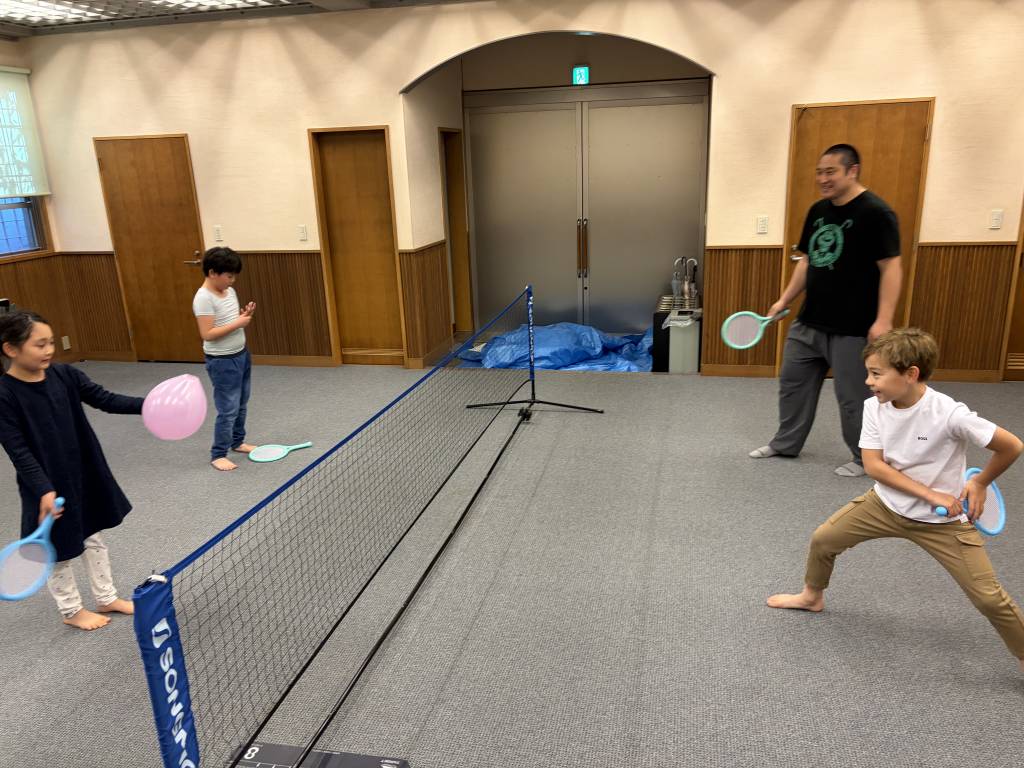 また、風船バレーで体を動かし、自分達でルールを決めたりと頭と体を使って楽しみ、最後はオリジナルの手作り釣竿を使っての、駄菓子釣りを体験してもらいました。
