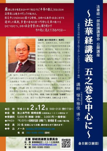 合掌 時下益々ご清栄のこととお慶び申し上げます。 この度、当方主催「法華経一部読誦講習会~…