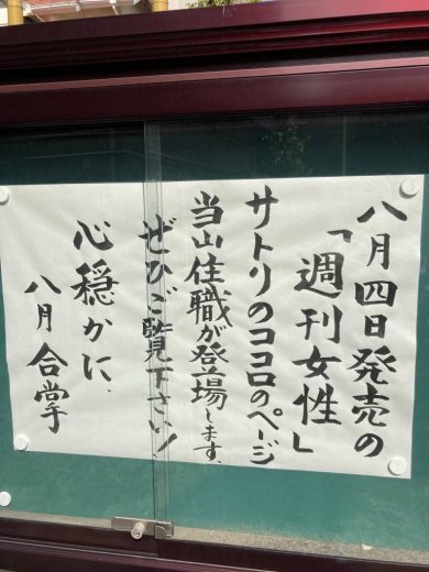今月の掲示板はこれです! この度、日蓮宗からの依頼により、8月4日発売「週刊女性」の「サトリの…