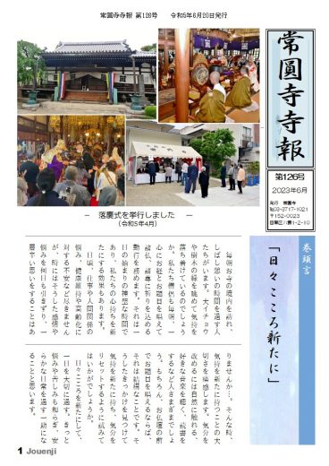 『常圓寺寺報』126号を発刊しました。 お盆やお施餓鬼、夏の行事をご案内しています。 お寺の受…