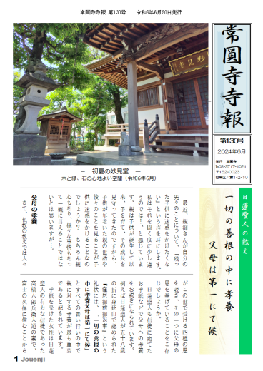 『常圓寺寺報』130号を発刊しました。 お寺の受付にも置いてありますので、ぜひご覧ください…