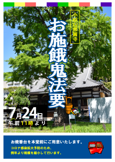 お施餓鬼法要 7月24日(土) 午前11時~ 今年のお施餓鬼法要は、コロナ禍に鑑み規模を縮小…