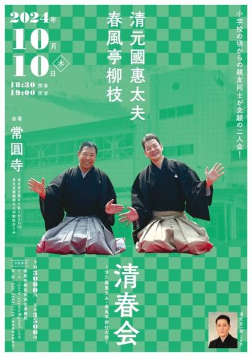 お寺の地元の八雲小学校出身のお二方による共演! 歌舞伎浄瑠璃の1つである清元節、落語の「二…