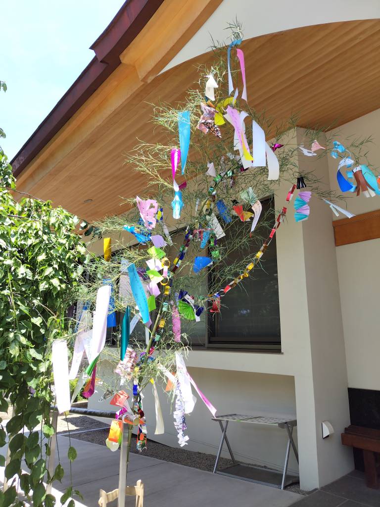 お願いごとを書いた短冊や、色とりどりの七夕飾りをほどこして、完成です!