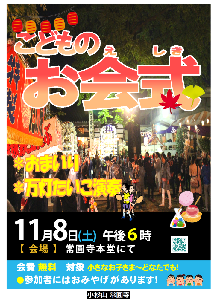 11月8日の常圓寺お会式では、午後6時から「こどものお会式」を本堂にて行います!