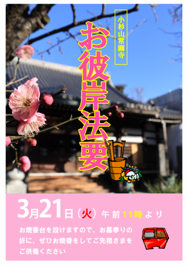 お彼岸 お中日法要 3月21日(火) 午前11時 法要 春のお彼岸がやってまいります。春のお彼岸は、…