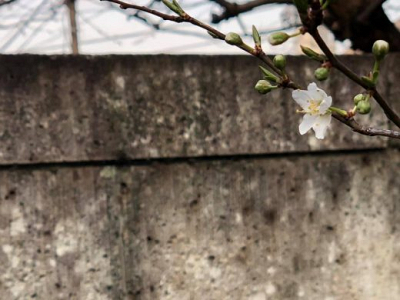 山門を入ってすぐの菊枝垂れ桜が咲き始めました。 まだまだ小さな木ですが、綺麗は花を付けました…