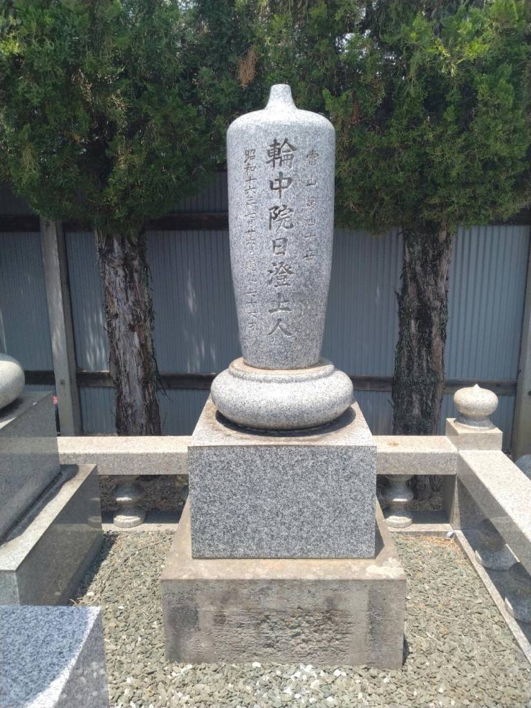 栃木県佐野の本山妙顕寺に建つ輪中院日澄・高森玄碩上人墓塔(住職撮影)