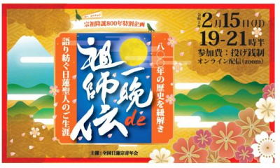 宗祖降誕800年を記念し、去る令和3年2月15日にオンライン開催された「一晩de祖師伝」(全国日蓮宗青…