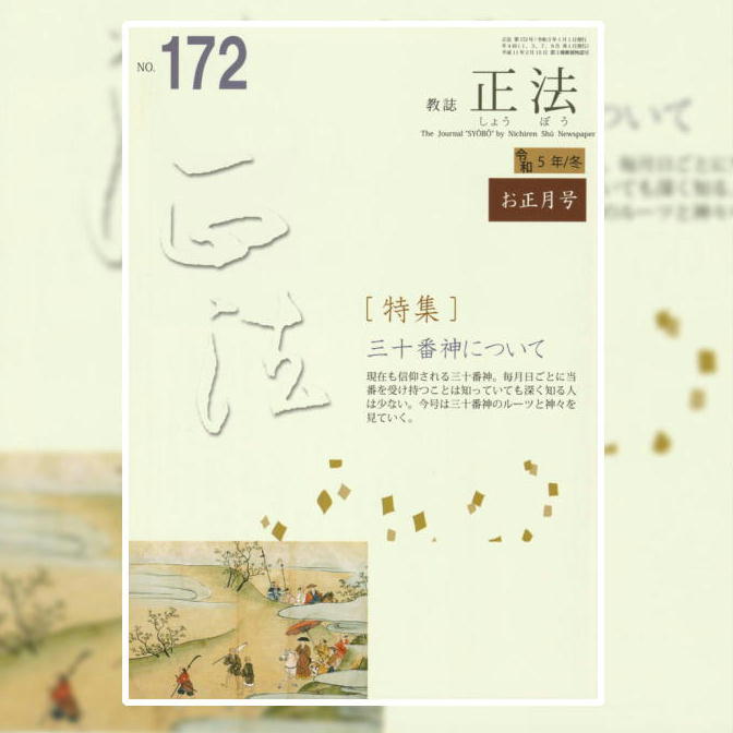 当山寺庭(住職婦人)の髙森万里子が、日蓮宗新聞社発行の『正法』172号(令和5年正月号)に「三十番神について」と題して筆耕しました。