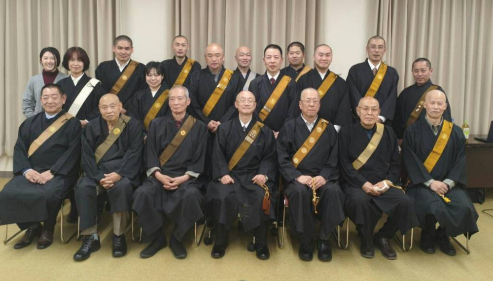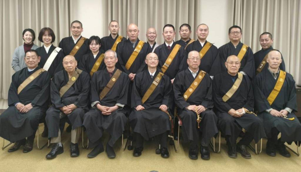 当山住職(前列中央)の向かって右隣に代表の三好一行師、その右に前代表の堀豊明師、当山住職の左隣が森下龍浄師