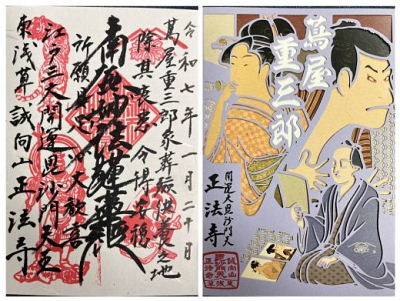 「正法寺 ご首題」と「JR東海 重ね切り絵ご朱印」