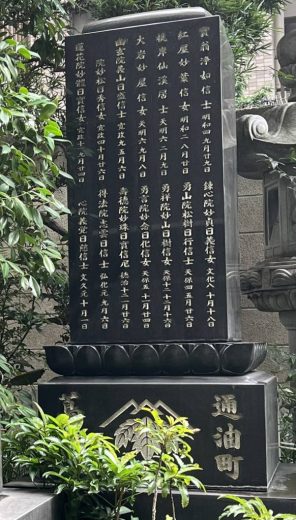 当山には蔦重のほか「実母 つよ」さん「妻 てい」さん等親族、蔦重歴代が葬られています