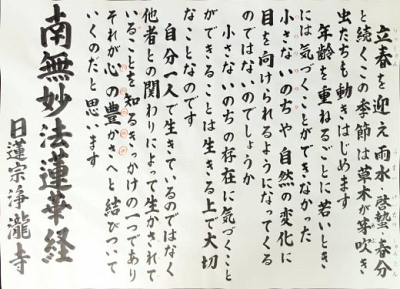 今月の掲示板は「如来寿量品第十六の一節」です。 [[[〈我亦為世父 救諸苦患者 為凡夫顚倒…