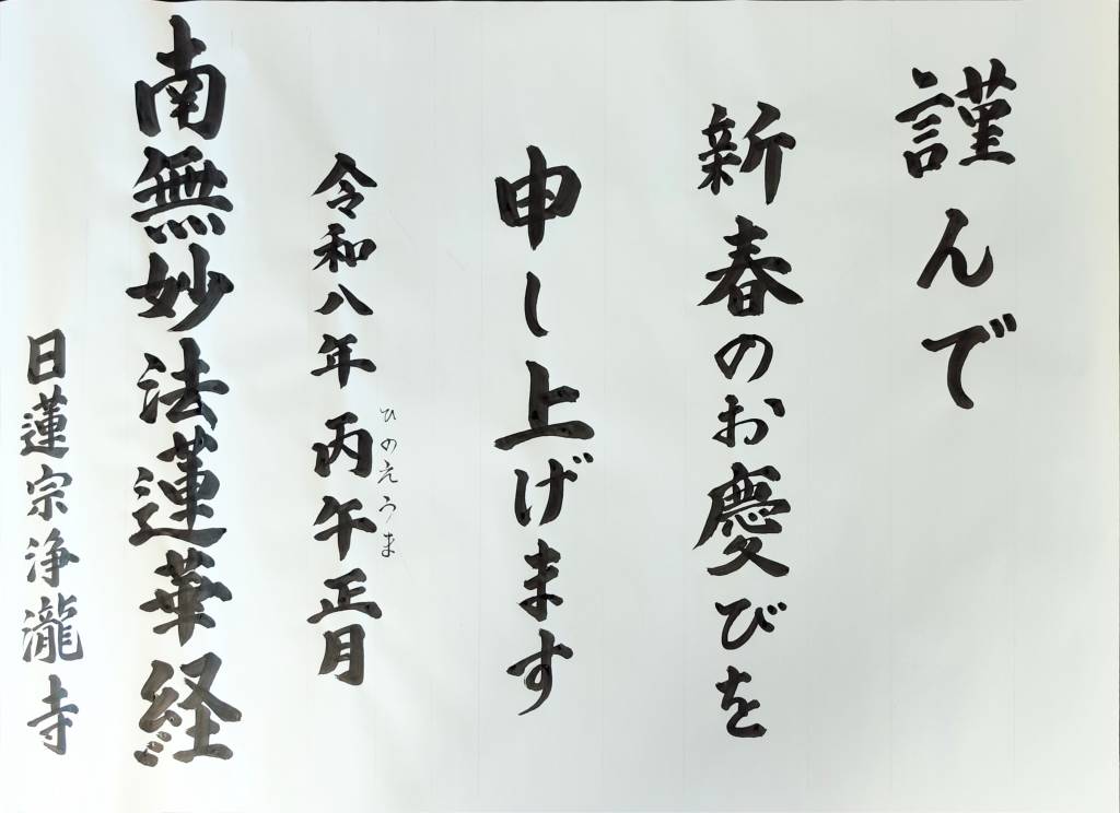 令和8年 新年のご挨拶 ブログ 記事公開日:2026年01月01日 令和八年 丙午(ひのえ うま) 明けましておめでとうございます。 本年もよろしくお願いいたします。 今年はうま(午)年です。丙午は火の性質が強い年とされ、情熱や強さを象徴するといわれています。 「何事もウマくいく」と自分に言い聞かせ、よい転換を得て、飛躍する年にしたいものですね。 皆様の本年一年の無病息災を心よりご祈念申し上げます。 合掌 PREV NEXT 一覧へ