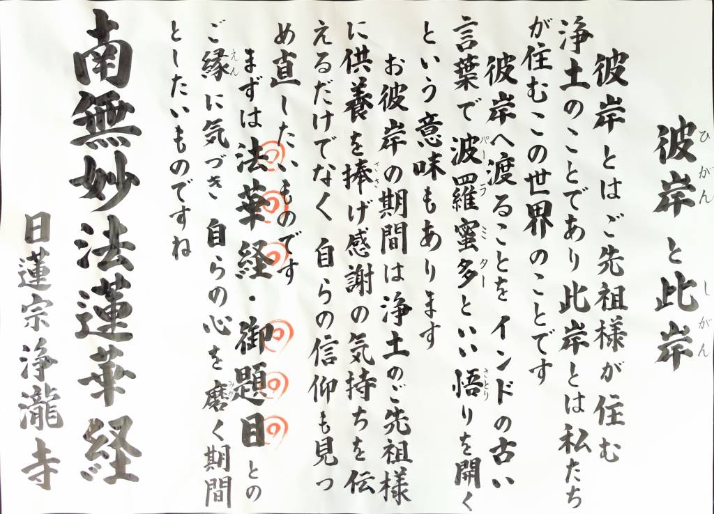 お彼岸の期間は浄土のご先祖様に供養を捧げ、感謝の気持ちを伝えるだけでなく、自らの信仰も見つめ直したいものです。