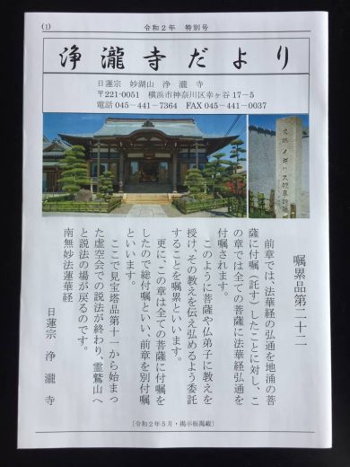 このたび5月1日到着予定で、檀信徒の皆様宛に「浄瀧寺だより 特別号」「こども新聞 第3号」「ぼく…