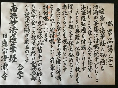 本章では、お釈迦様の説法の場にいたすべての菩薩たちに、釈尊滅後に法華経を弘めることを付嘱します…