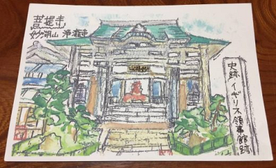 当山本堂をモチーフにした絵手紙が届きました。 描いたのは檀家さんで、毎回すてきな絵手紙を届けて…