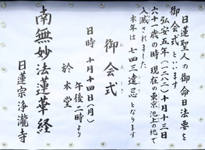 令和6年10月14日(月)、浄瀧寺本堂において宗祖御会式法要が奉行されました。 「御会式(…