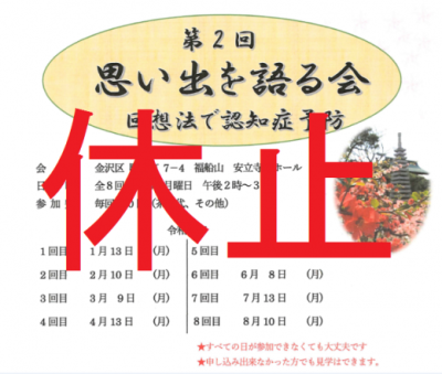 開催中止のおしらせ:第2回 思い出を語る会 回想法で認知症予防