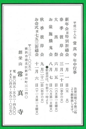 平成28年度 行事予定 新年会並特別祈祷会 1月1日(元旦) 春季彼岸会&nb…