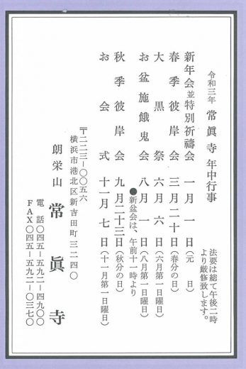 令和3年 2021 行事予定