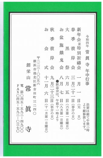 令和4年 2022 行事予定 新年会並特別祈祷会 1月1日(元旦) 春…
