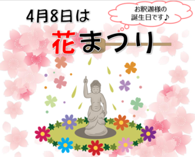 こんにちは!蓮久寺です。 4月8日は、花まつり。 お釈迦様のお誕生日です♪ 今年はその前日の4…