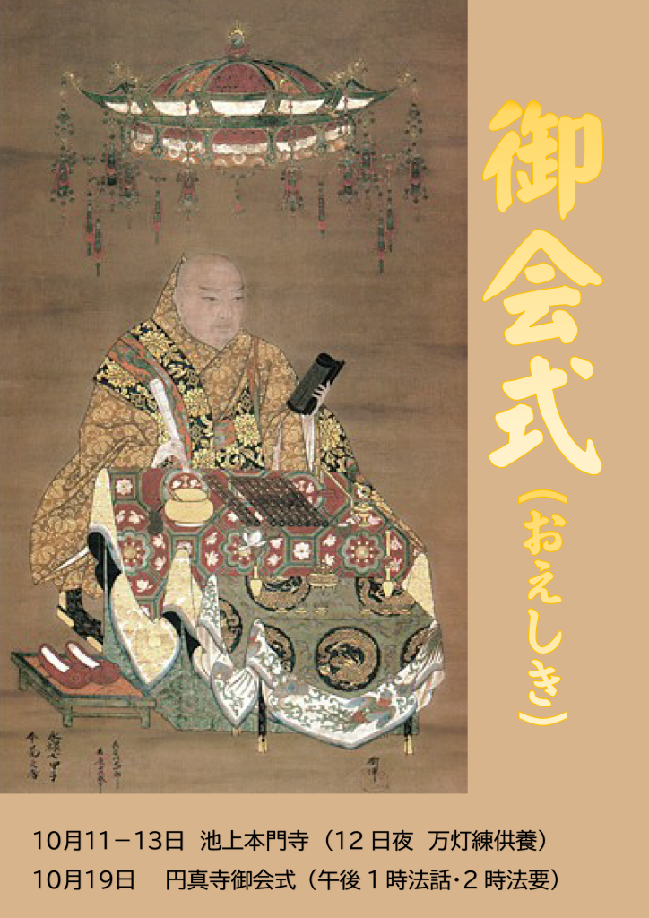 今般案内している「お会式」の正式名称を辿ると、「宗祖日蓮大聖人・報恩会式」になります。昔の池