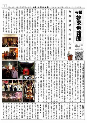 なんと、妙恵寺新聞も今号で30号を迎えることが出来ました。