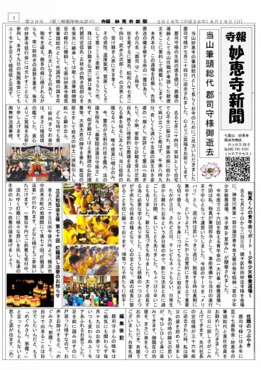 さて、今月も妙恵寺新聞が完成いたしましたので、アップいたします。