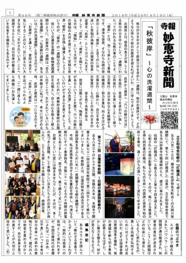 皆様のお陰様をもちまして、妙恵寺新聞も40号を発行することが出来ました。