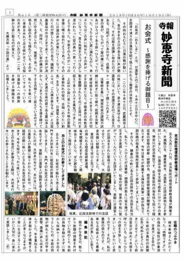 さて、今月も妙恵寺新聞が完成いたしました。