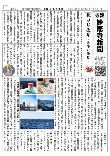さて、今月も妙恵寺新聞が完成いたしました。