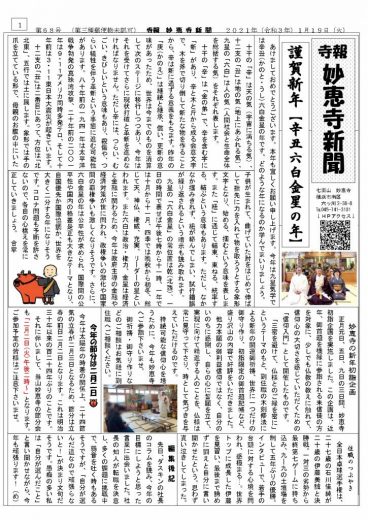 本年も皆様に妙恵寺新聞を通じて、新たな気づきと豊かな学びをお届けできるよう、精進して参ります。