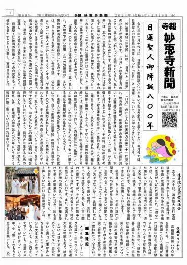 日蓮宗では、令和3年2月16日に日蓮聖人御降誕800年という大きな節目を迎えました。