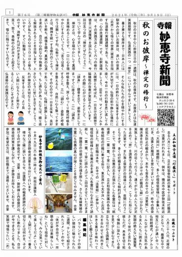 さて、今月も妙恵寺新聞が完成いたしました。