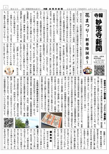 今号では、「花まつり」についてお送りしております。