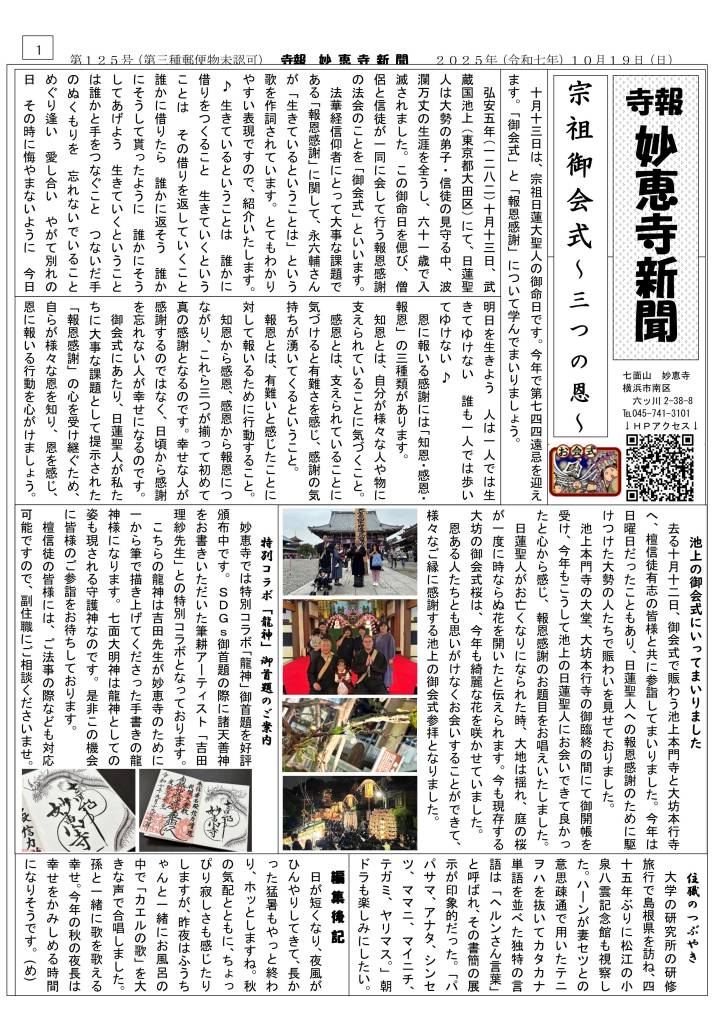 さて、今月も妙恵寺新聞が完成いたしました。